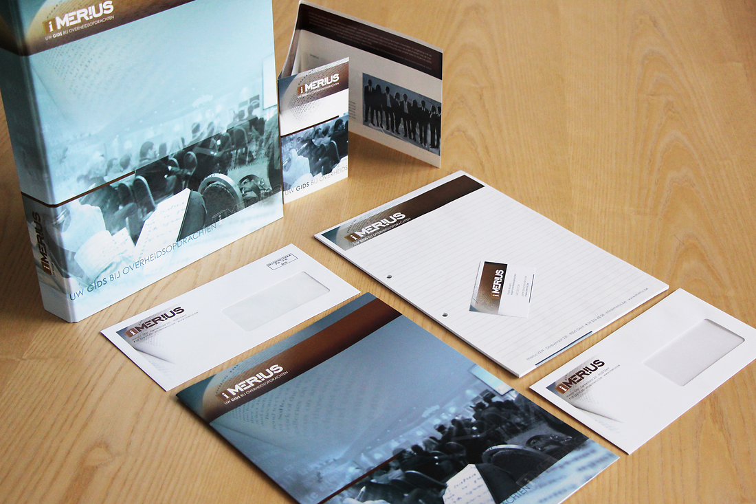 Logo, huisstijl, naamkaartjes, enveloppen, ringmap, brochure, folder, notitieblok.