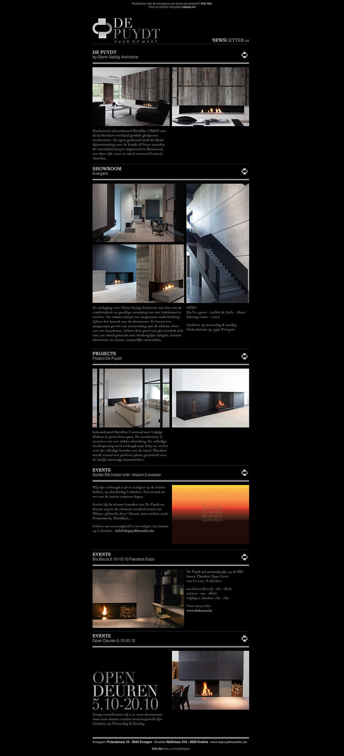 Voor De Puydt ontwikkelde Tallieu & Tallieu een mailingtool waarmee de klant zelf e-mailcampagnes kan opbouwen en versturen. De rapportage van aantal opens, bounces en clicks maakt de evaluatie achteraf eenvoudig.